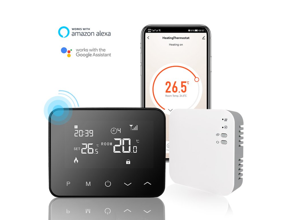 Termostat je intuitívne a ľahko programovateľný, je možné nastaviť týždenný rozvrh, môžete nastaviť manuálne reguláciu, termostat je kompatibilný s Amazon Alexa a Google Assistant